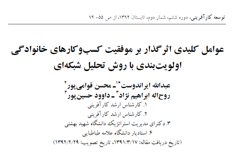 عوامل کلیدی اثرگذار بر موفقیت کسب وکارهای خانوادگی با اولویت بندی تحلیل شبکه ای